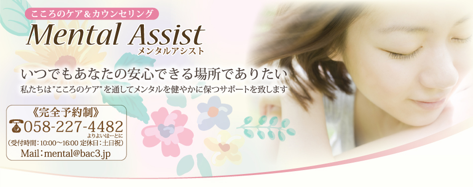 笑顔になるための” こころのケア” を通してみなさんのメンタルをアシスト、サポートさせていただきます。